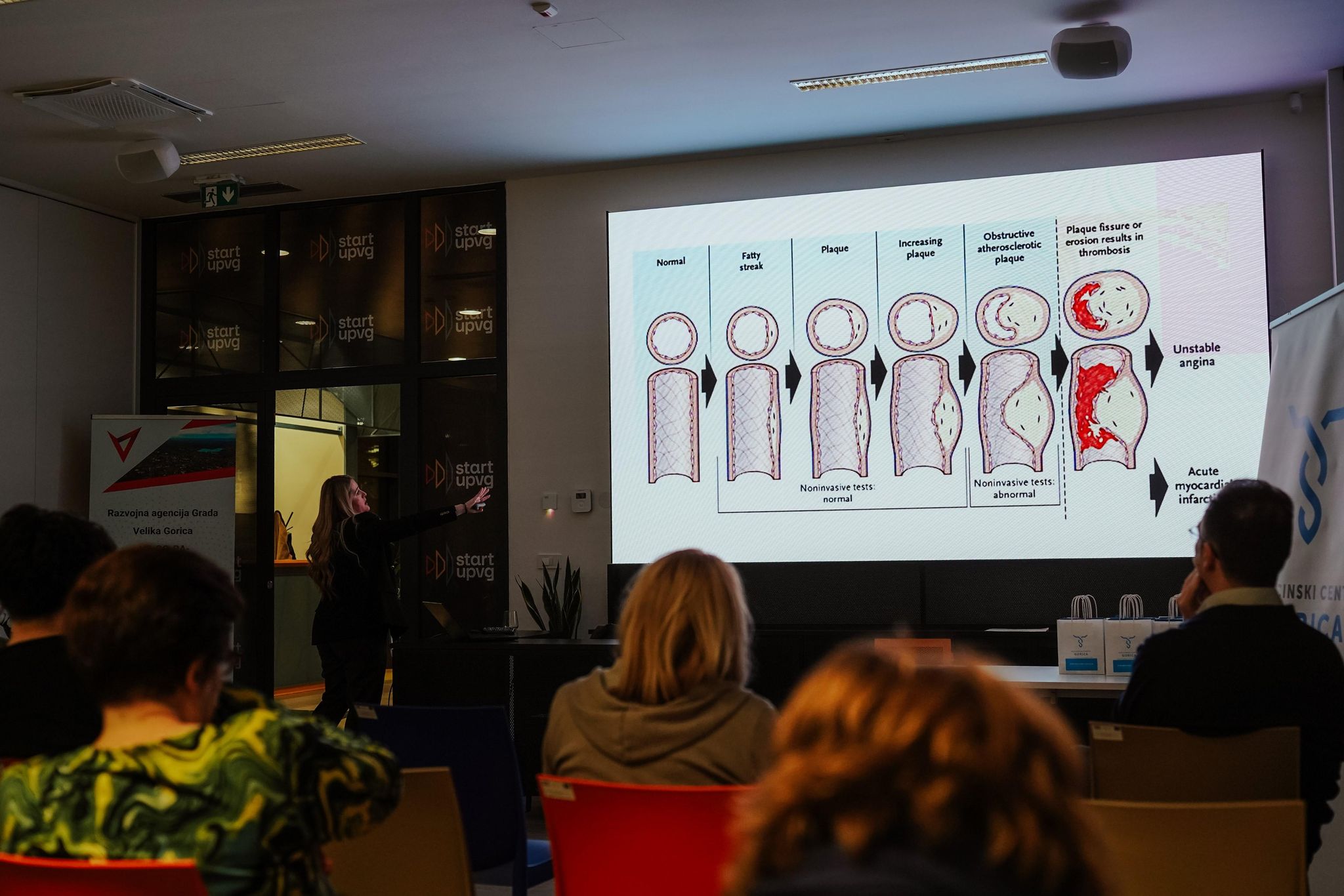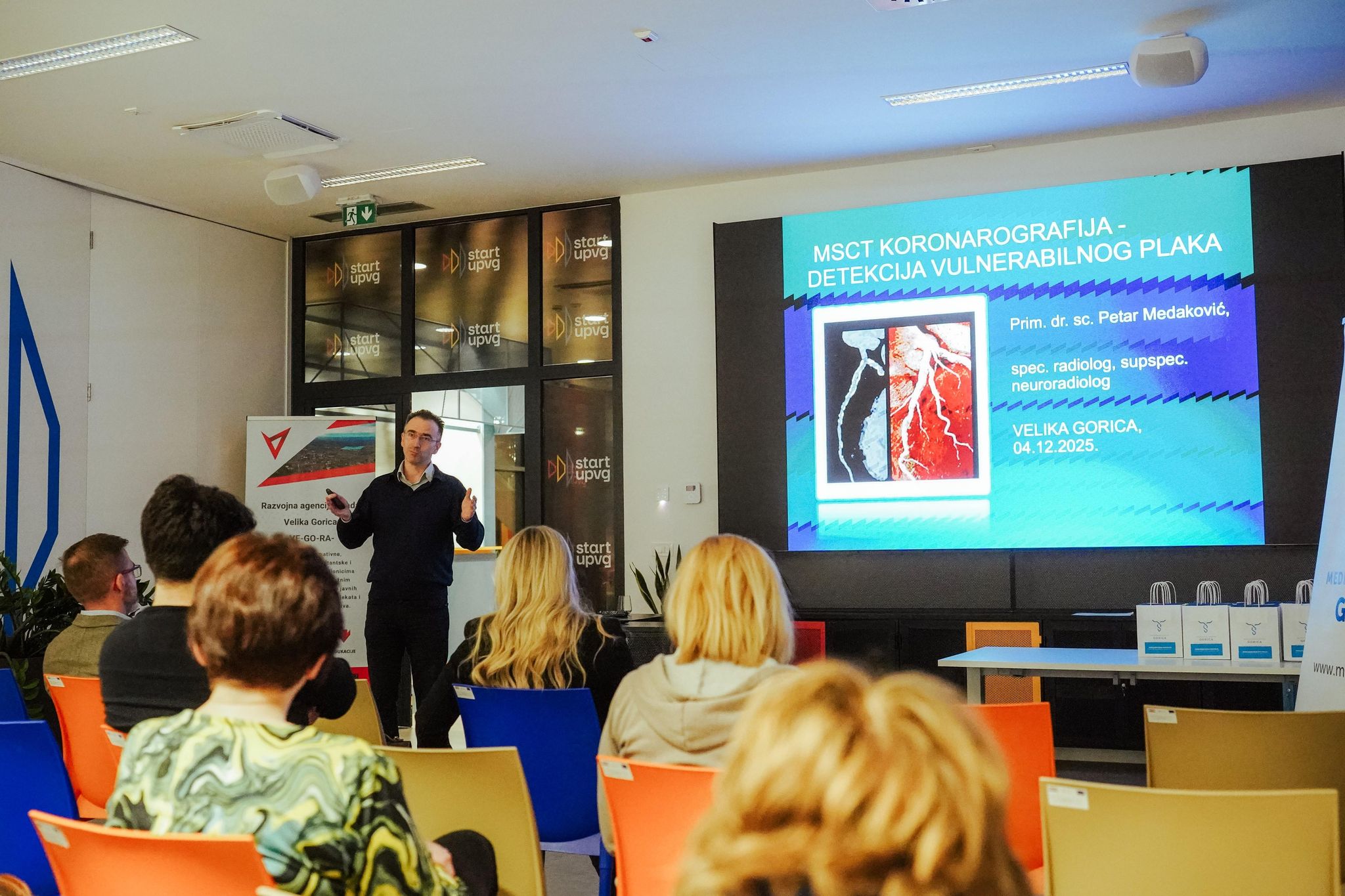 Veliko hvala prim. Petru Medakoviću i specijalisti kardiologije Eni Kurtić, dr. med. na vrhunskim predavanjima. Fokus predavanja bio je na MSCT koronarografiji, najmodernijoj neinvazivnoj slikovnoj metodi za prikaz krvnih žila srca i važnom alatu u prevenciji kardiovaskularnih bolesti koje je od nedavno među uslugama Medicinskog centra Gorica.